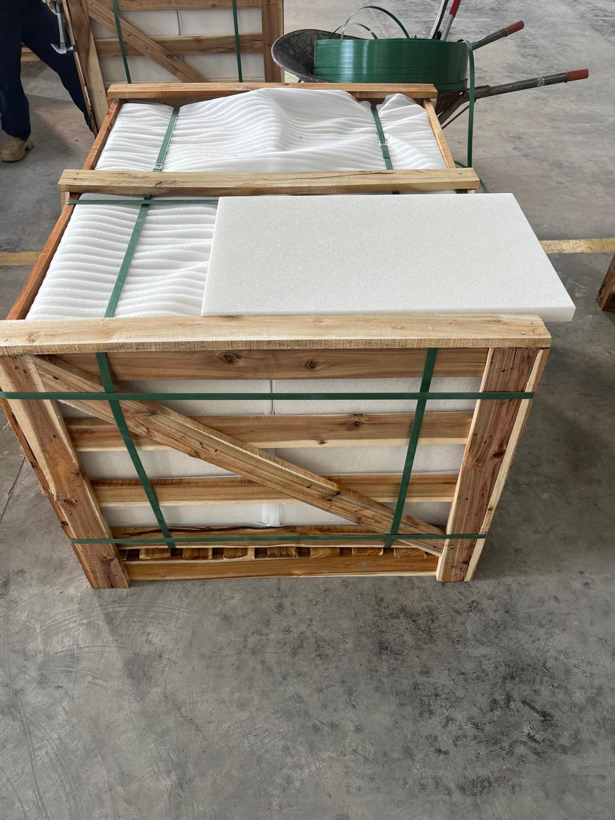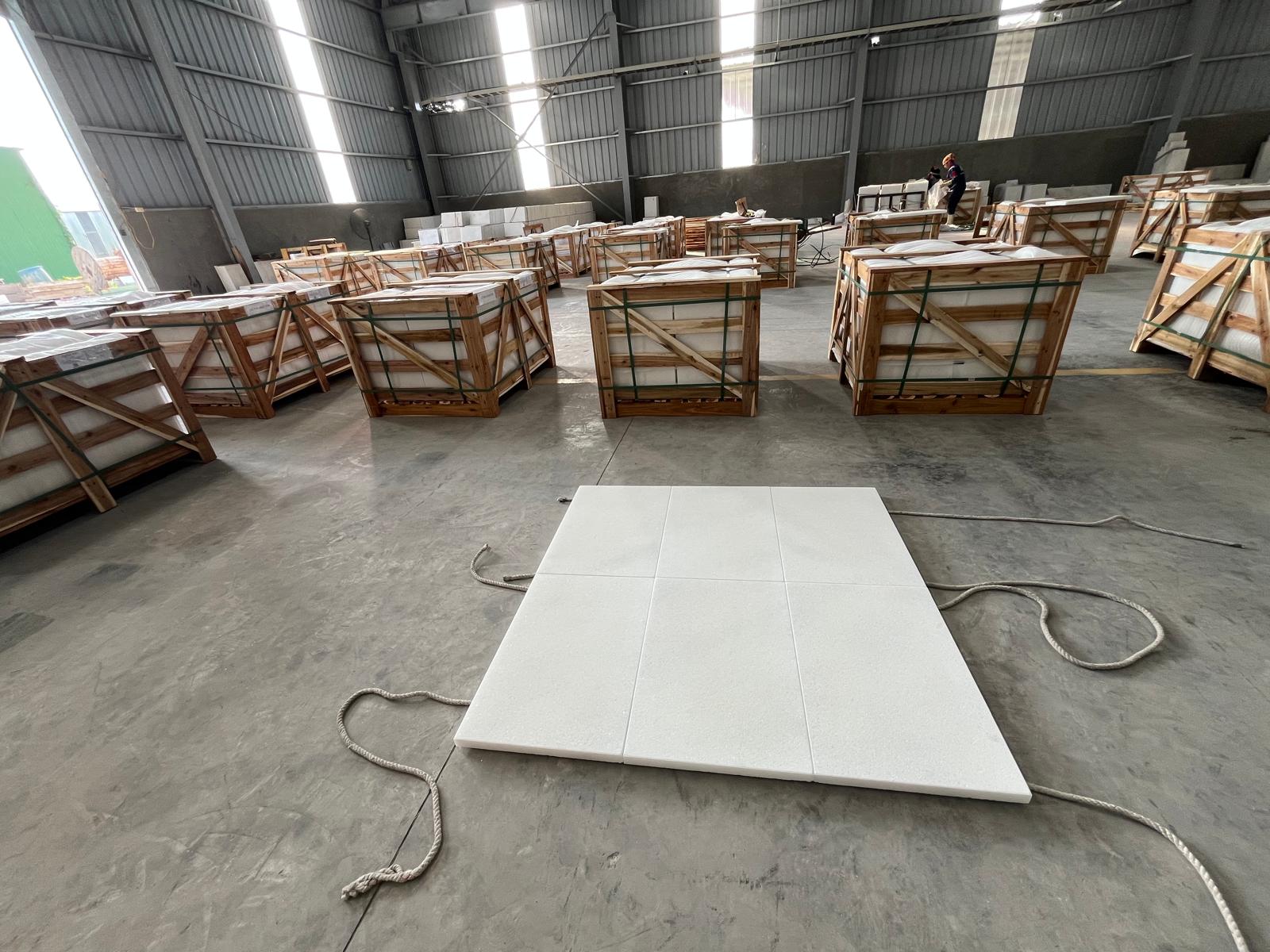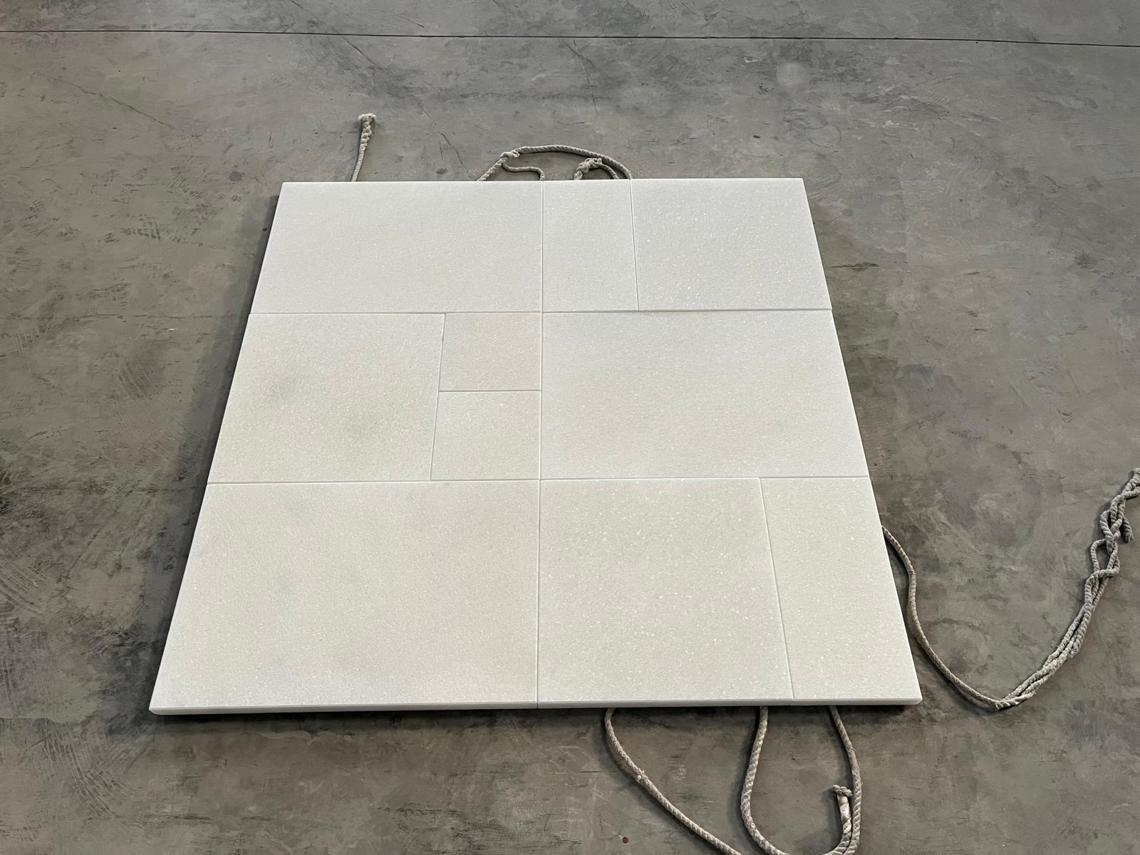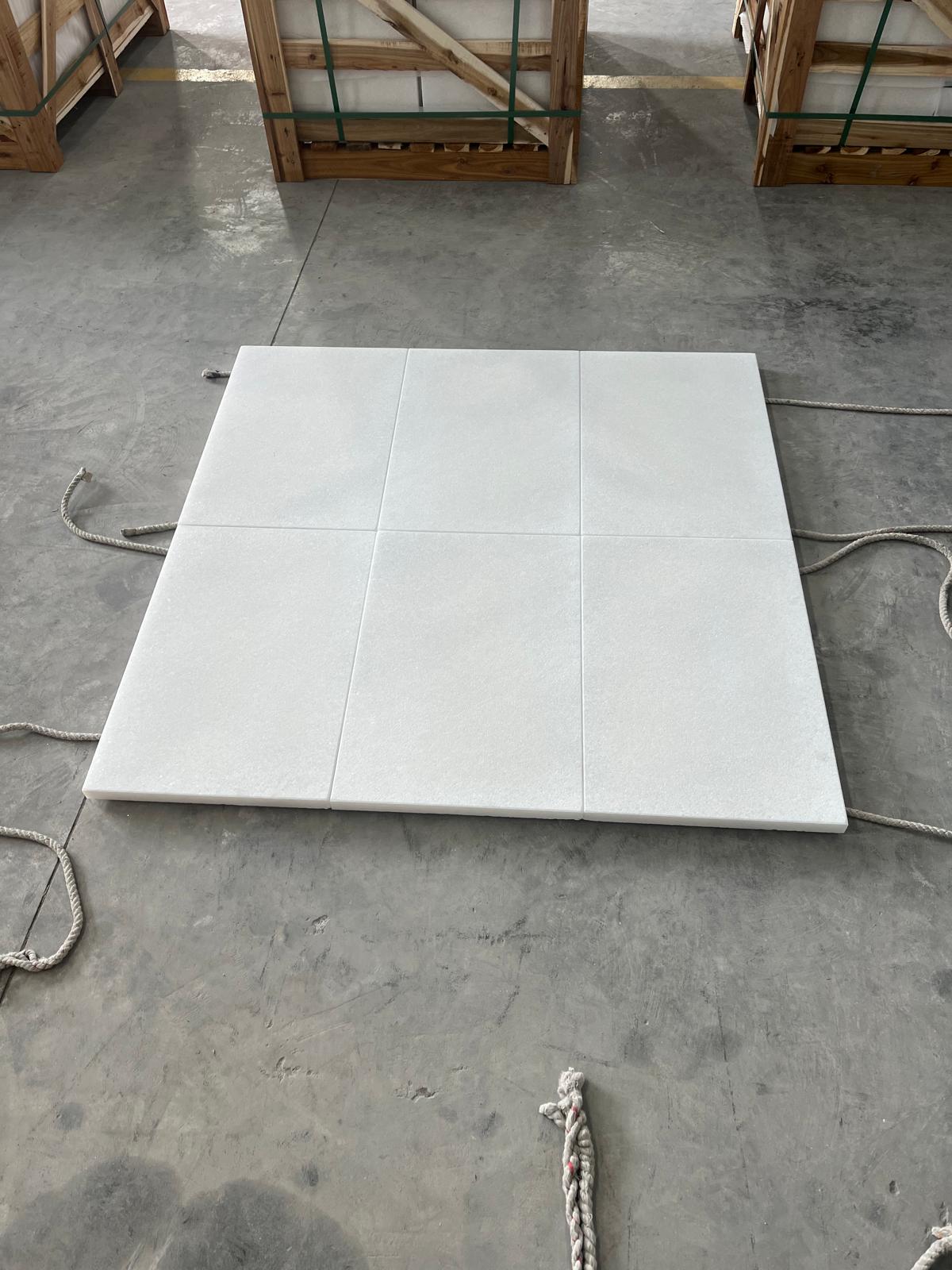 Sandblasted Vietnam White, mat ve kaymaz yüzeyiyle iç ve dış mekânlarda güvenli, modern ve ferah bir kullanım sunan doğal beyaz mermerdir.